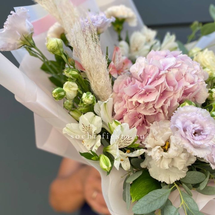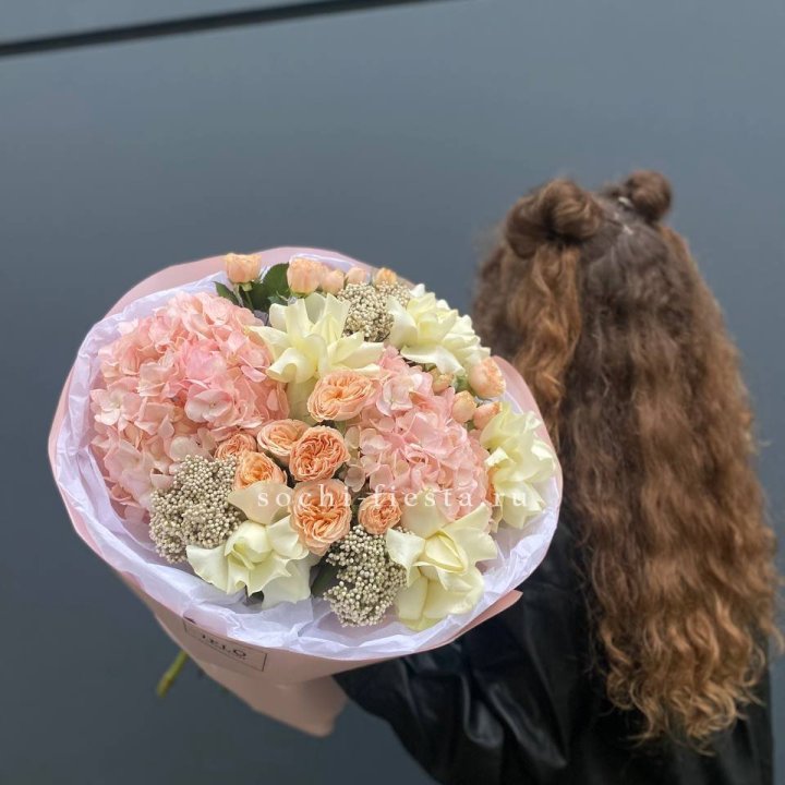 Букет гортензии и кустовых роз
