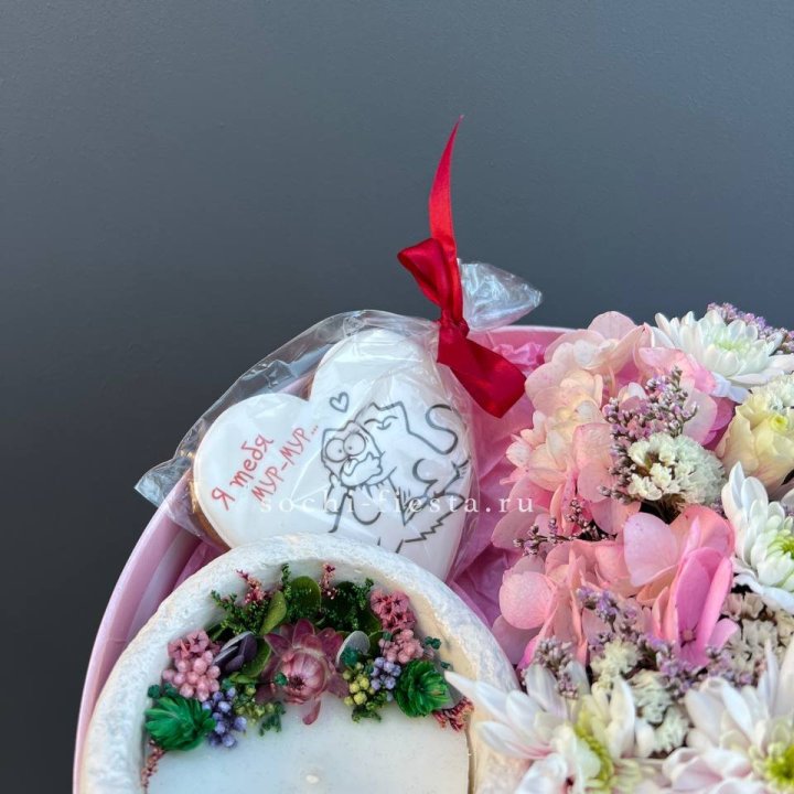 Бокс с клубникой и цветами