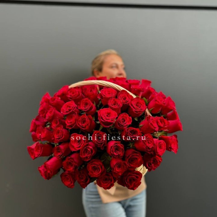 101 красная роза в корзине