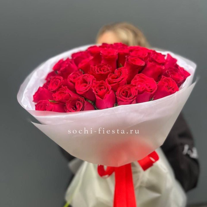 25 высоких красных роз