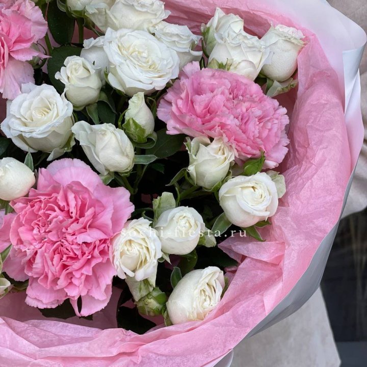 Букет розы с диантусами "Блэш"
