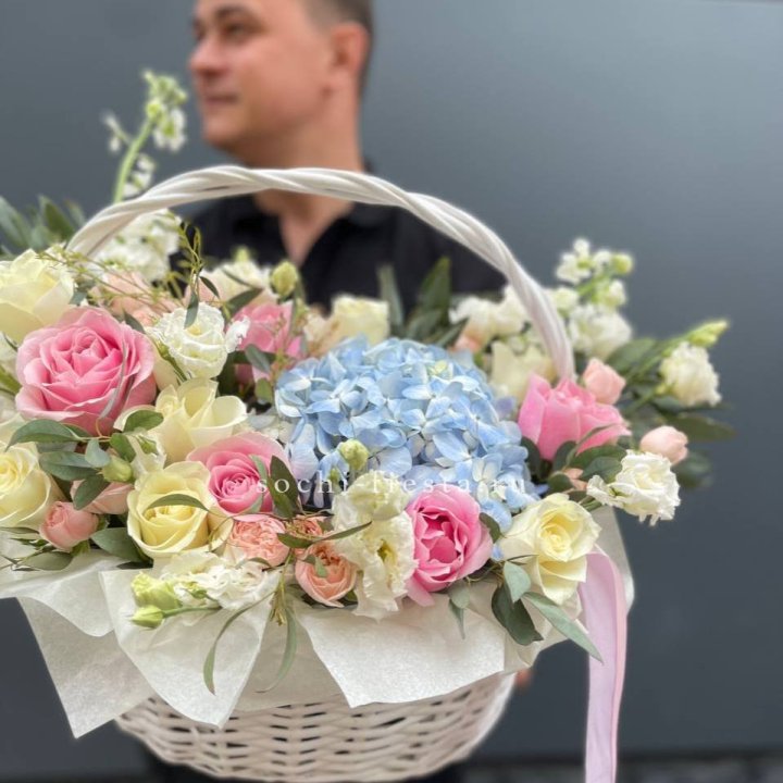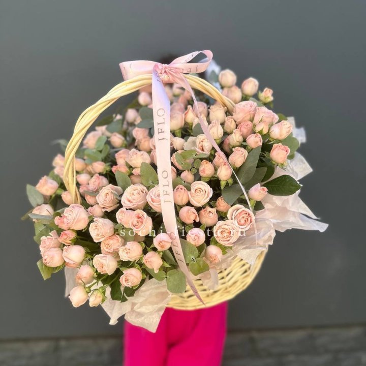 Корзина кустовых пионовидных роз