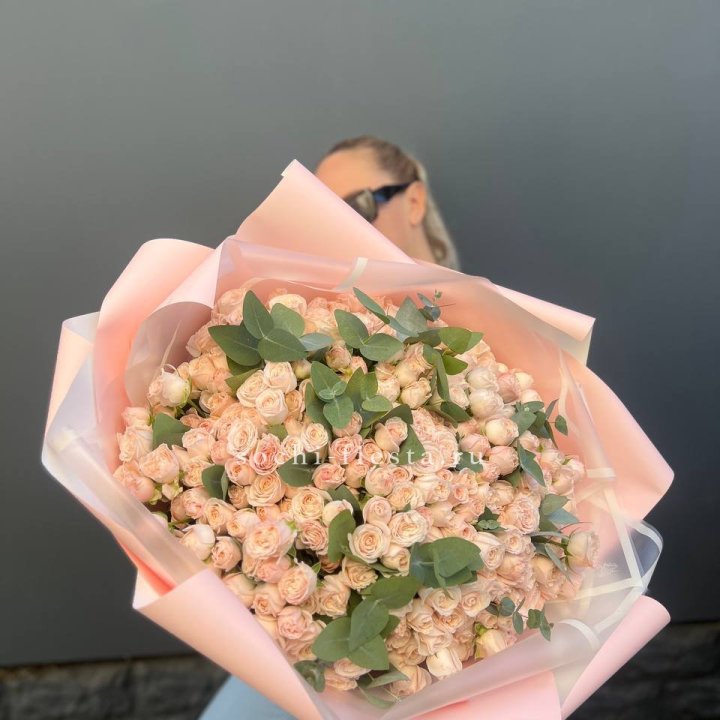 101 кустовая роза с эвкалиптом