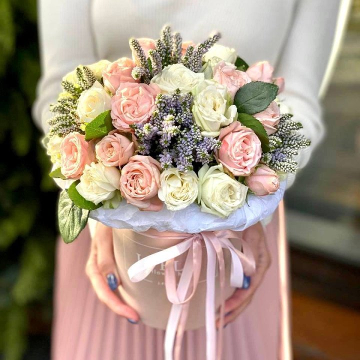 Кустовые розы в коробке