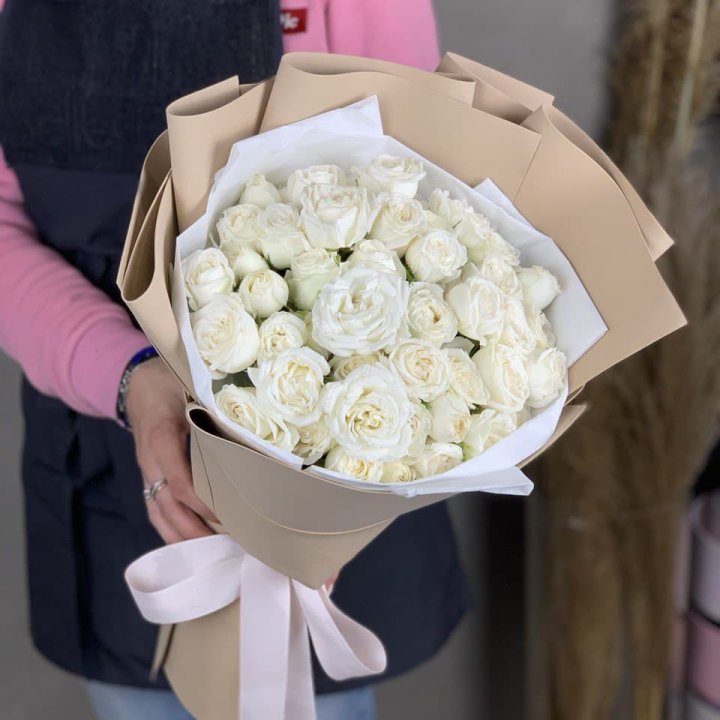 Белые кустовые розы 31 шт