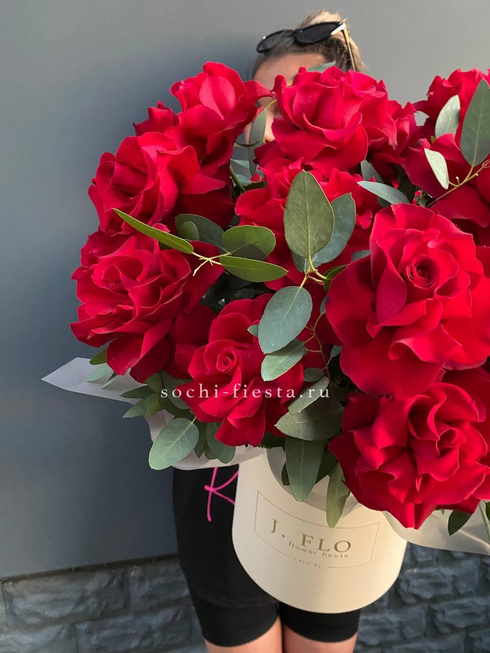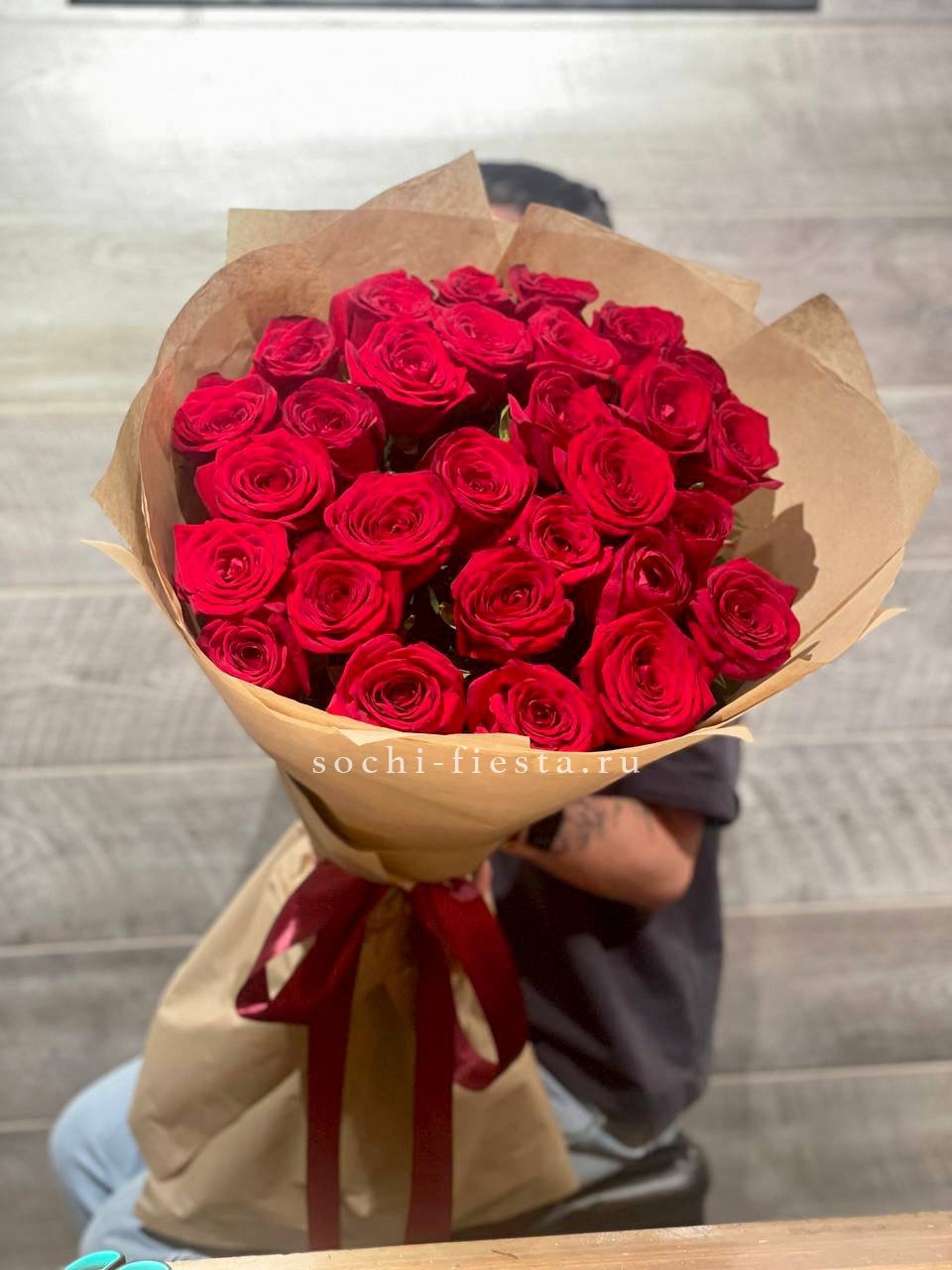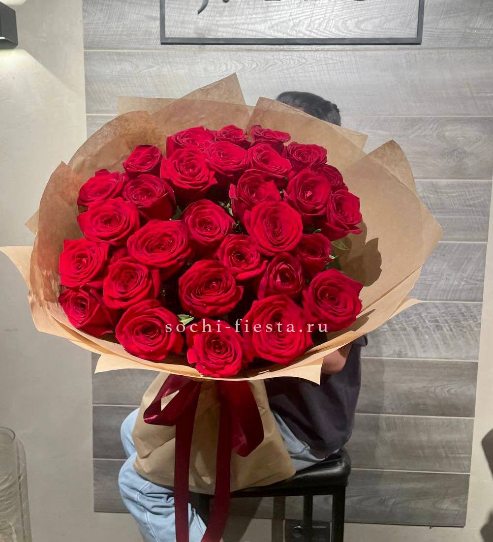 15 роз сорта джумилия, лента, дизайнерская упаковка.