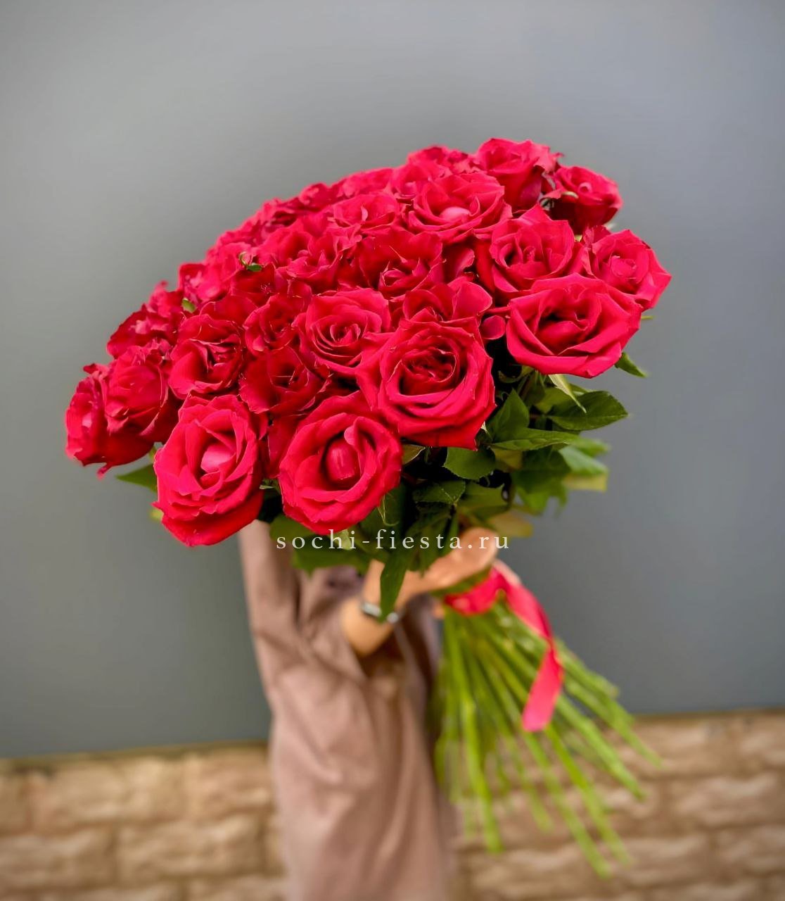 35 красных роз под ленту.