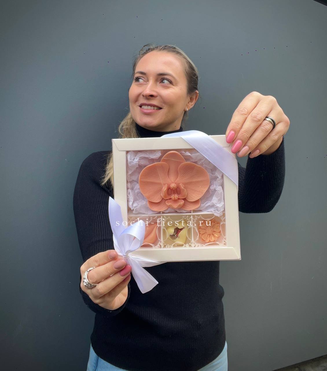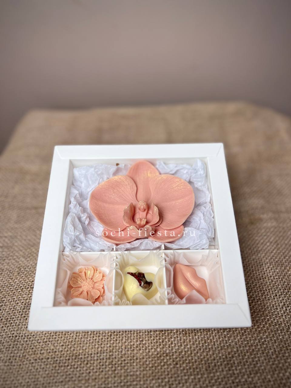 4 сердца из бельгийского шоколада. Есть две начинки- с орехом или Дубайским шоколадом (менеджер подскажет по наличию). Ручная роспись.