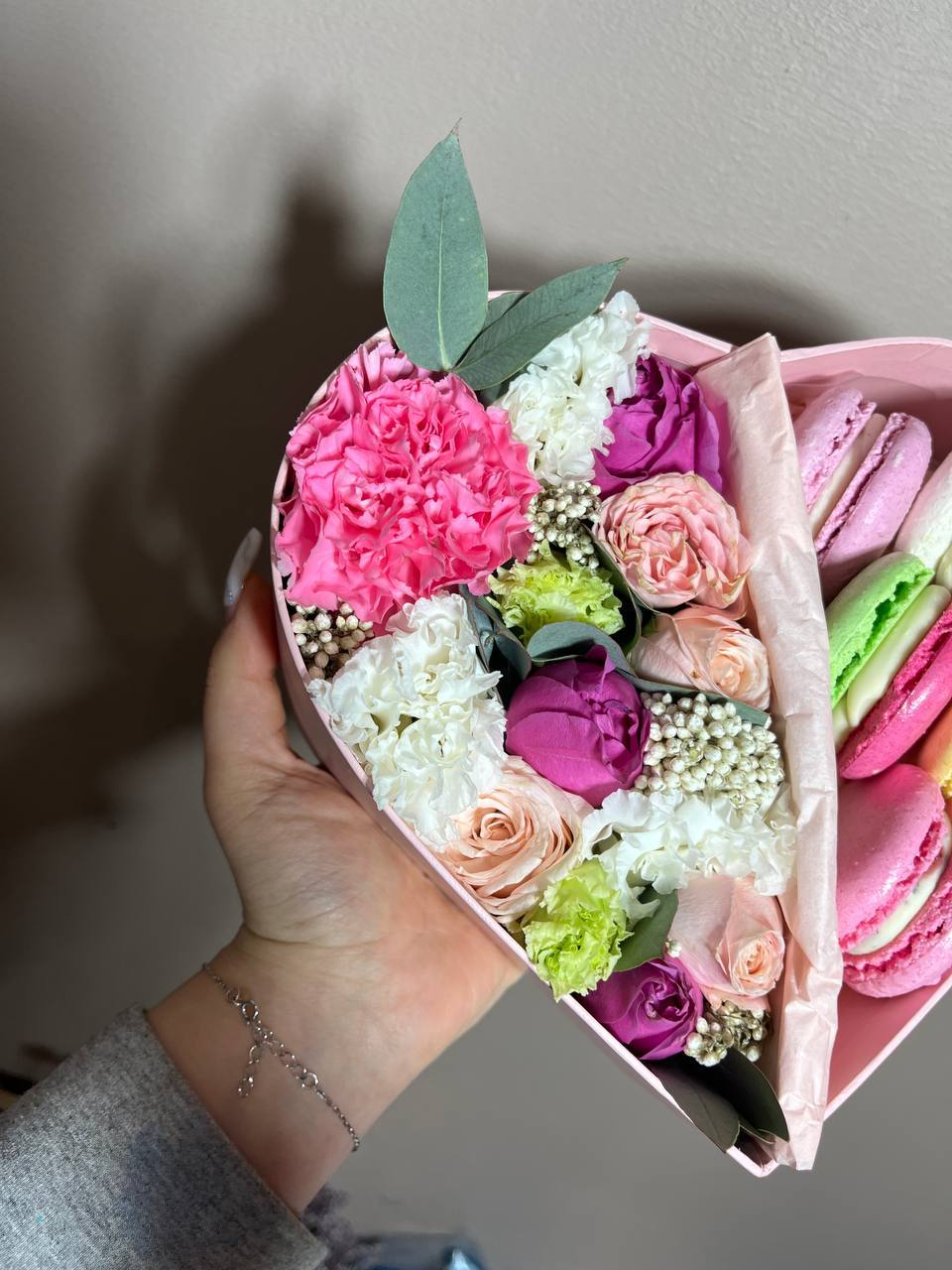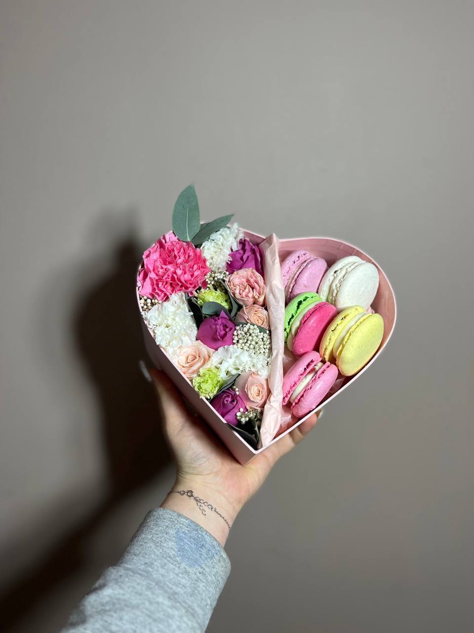Для заказа товара "Дуо цветы и макаронсы" с доставкой в Уфе нажмите в корзину