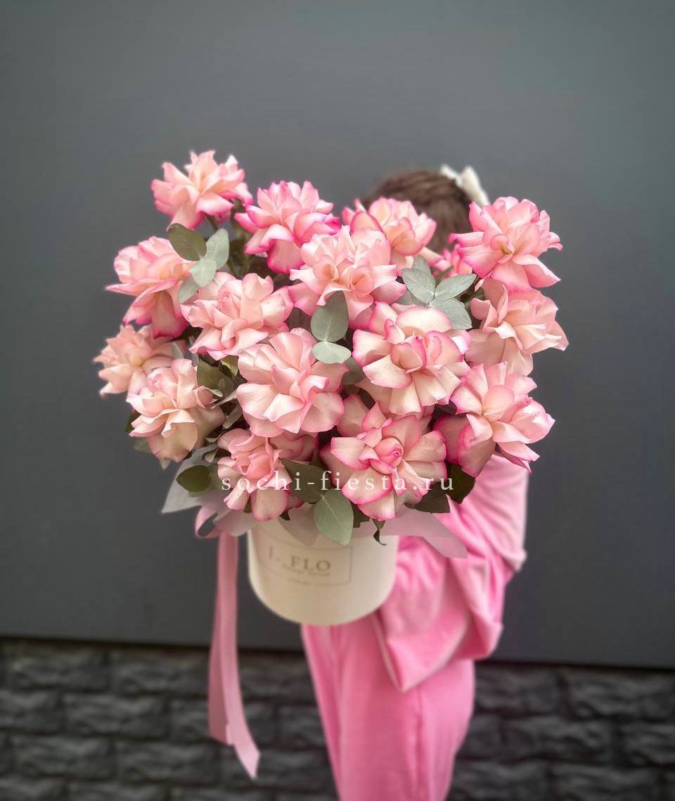 вывернутые розы Венди, цилиндр D20, эвкалипт, лента, упаковка.