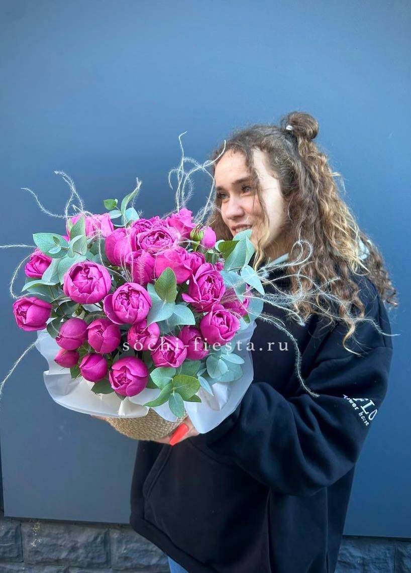 Для заказа товара "Пионовидные розы в джутовом кашпо " с доставкой в Уфе нажмите в корзину