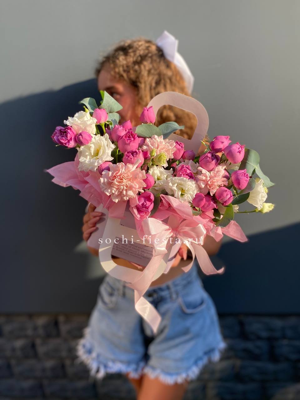 Для заказа товара "Сумочка с кустовой розой и диантусами" с доставкой в Уфе нажмите в корзину
