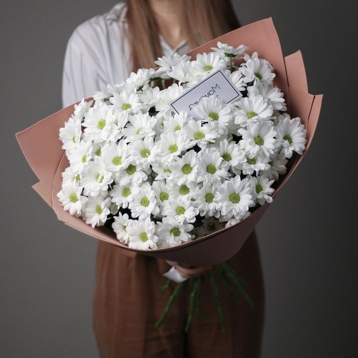 Монументальная композиция из полутора сотен белоснежных бутонов создает впечатление цветочного облака. Корзина придает устойчивость и завершенность форме, позволяя разместить такой масштабный ансамбль в любом пространстве.
