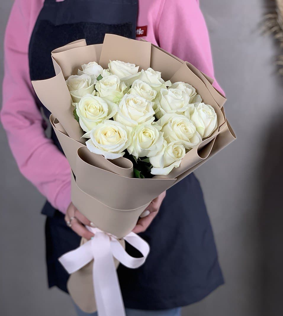 151 белая роза, оформление в букет или корзину на выбор.