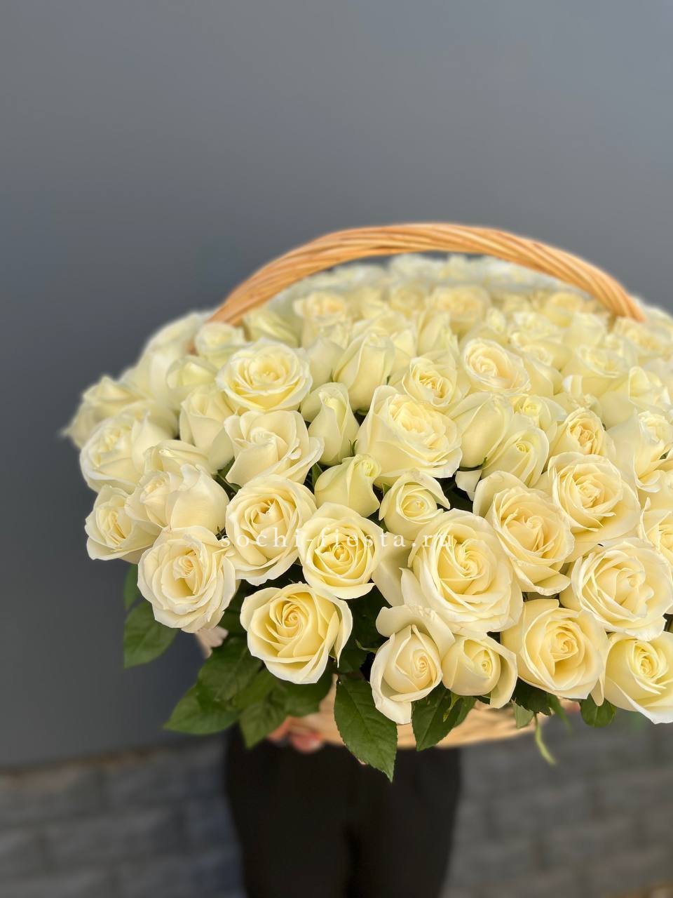 151 белая роза в корзине
