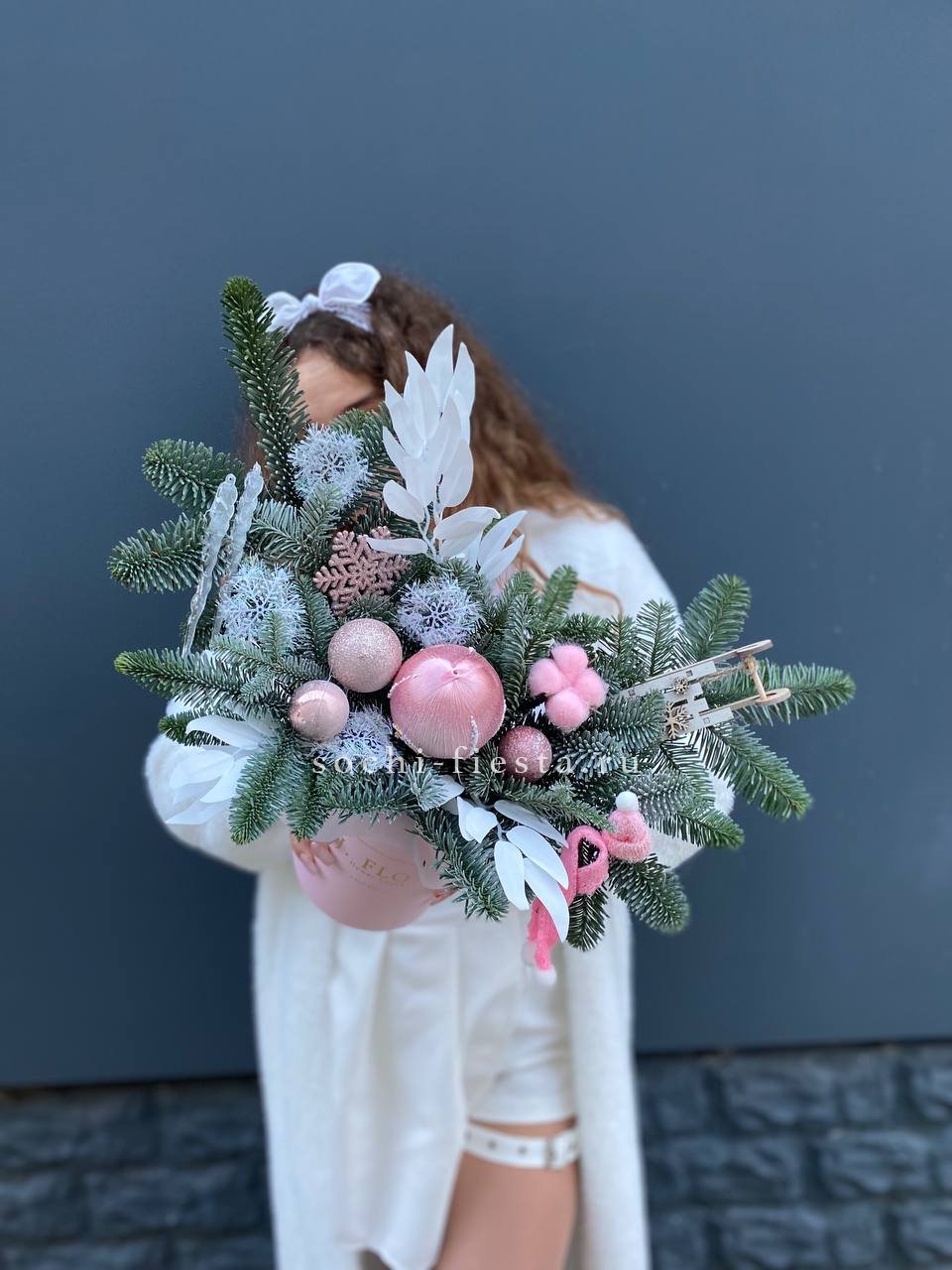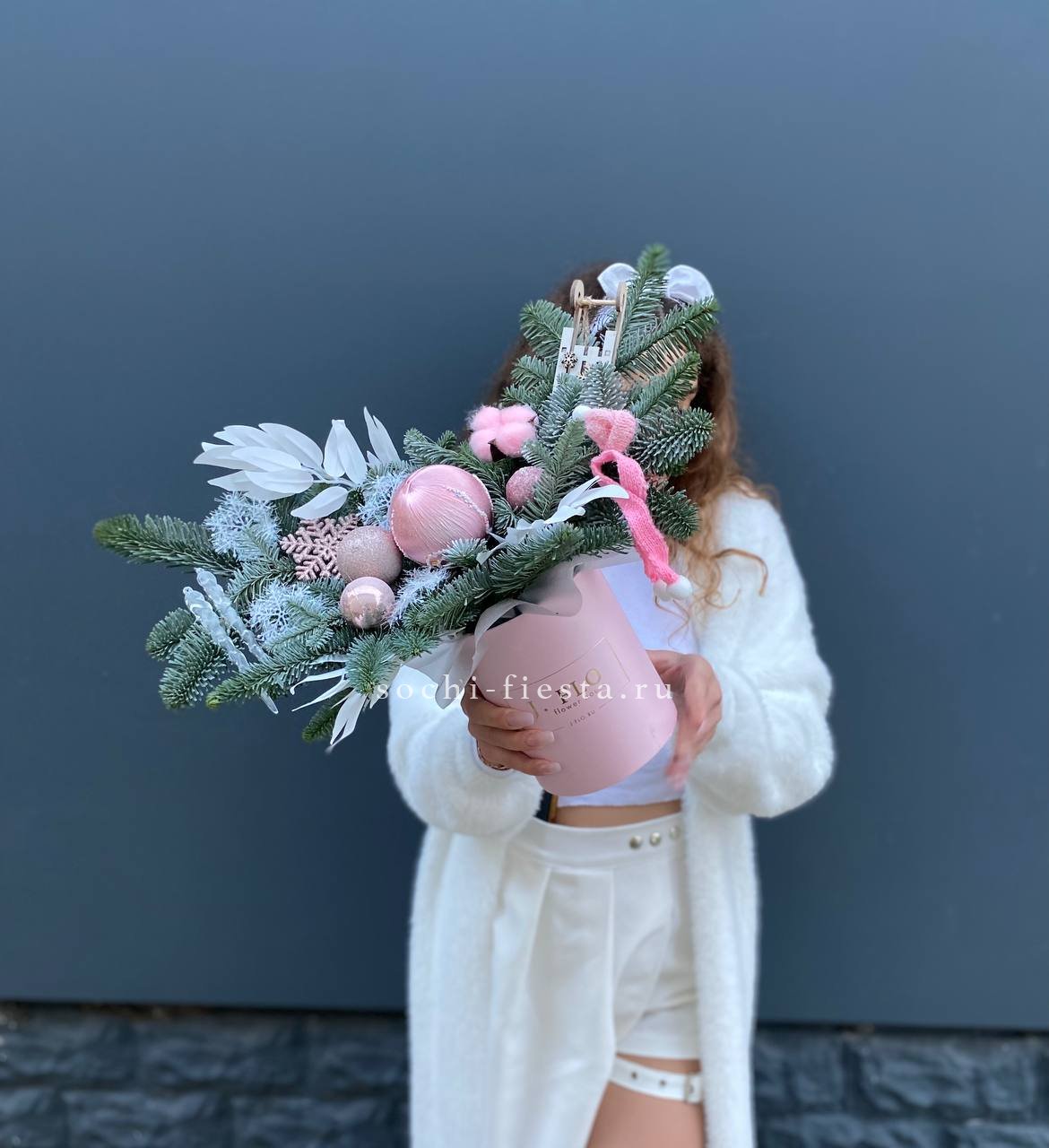 нобилис, цилиндр, оазис, сани, новогодние игрушки, декор ВНИМАНИЕ! Готовая композиция (декор) может иметь незначительные внешние отличия от примера на фотографии.