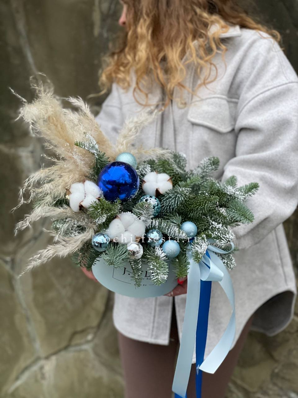 Новогодняя композиция в коробке блю