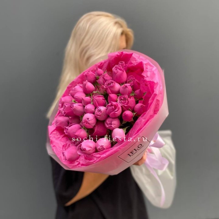 Заказ оформляется на сайте, в Телеграм-канале или через менеджера студии. Моно-букеты 25 и 51 роза всегда в наличии. Никах-букеты и свадебные композиции — предзаказ за 10-14 дней. Длинные стебли и специфические сорта — за 2-3 дня.