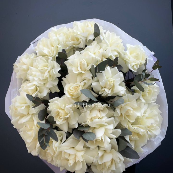 белые розы Mondial и Avalanche для никах-букета в уфимской студии