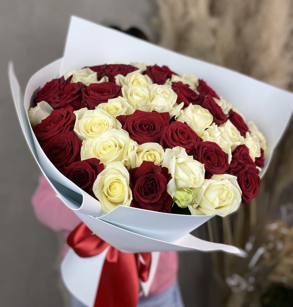 Для заказа товара "51 красная и белая роза" с доставкой в Уфе нажмите в корзину
