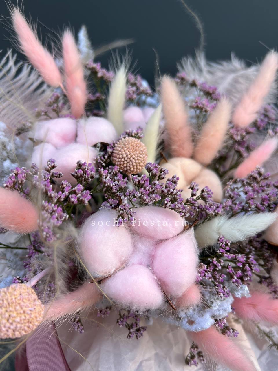 пионовидные розы мисти,  хлопка, эвкалипта, оформления.