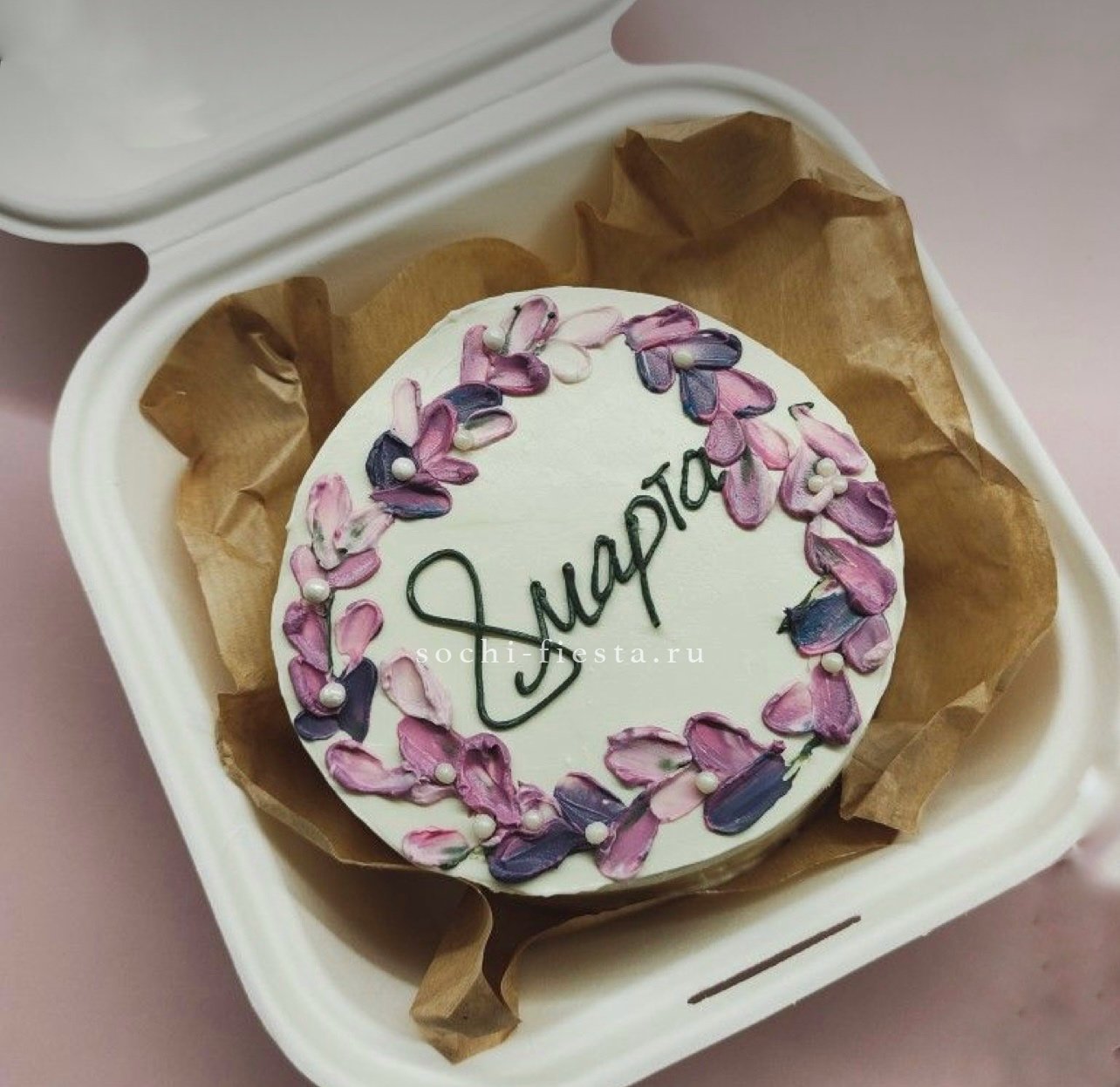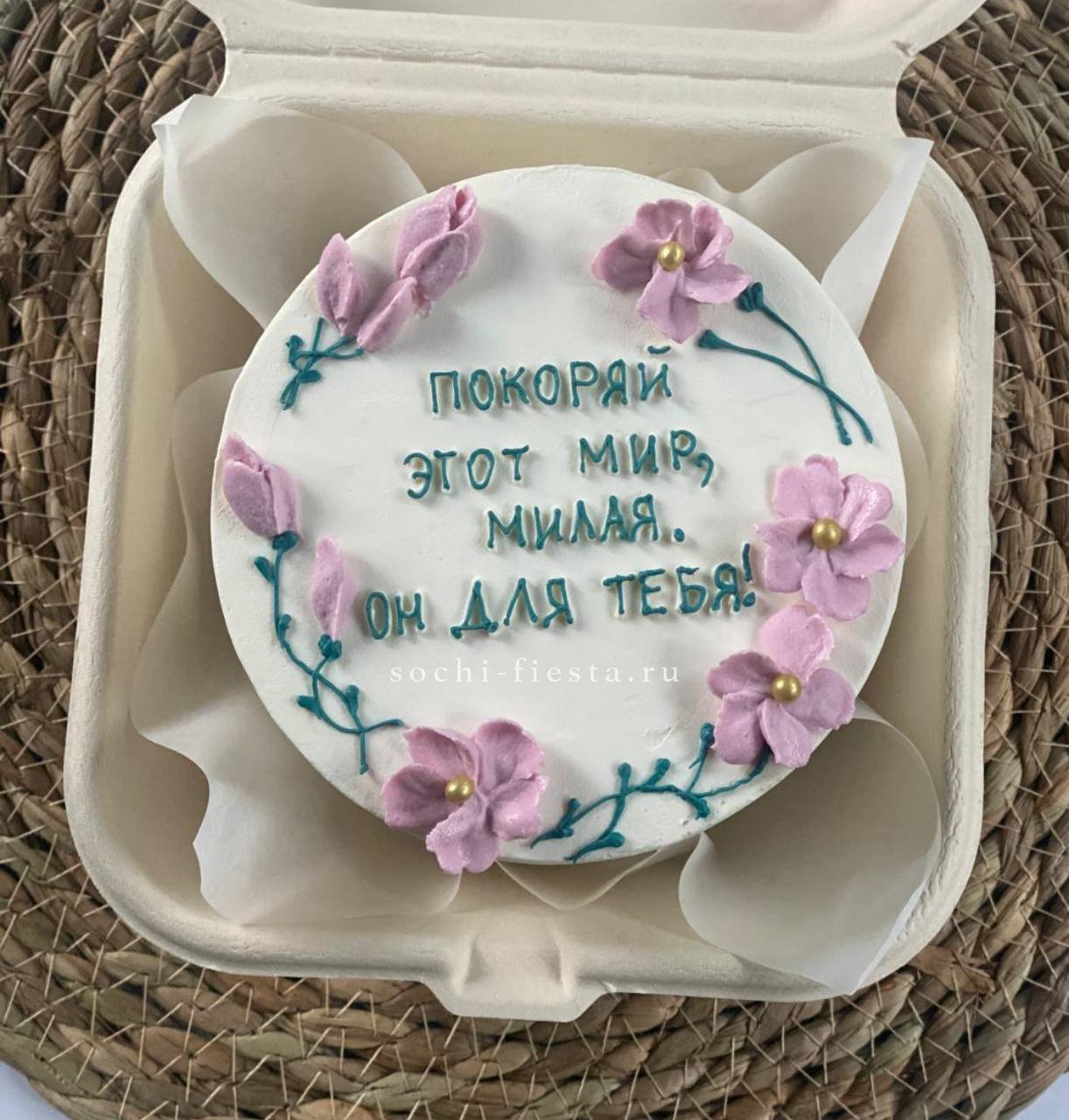 Слова благодарности становятся частью десерта, который умещается на ладони. Тёплая гамма крема и деликатный декор передают искренность без громких жестов.